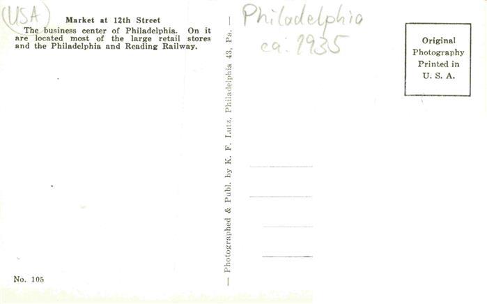 73972888 Philadelphia Pennsylvania USA Market Street postalisch nicht gelaufen Erhaltung siehe scans [FriedD77] KatCode: 14140410000000
