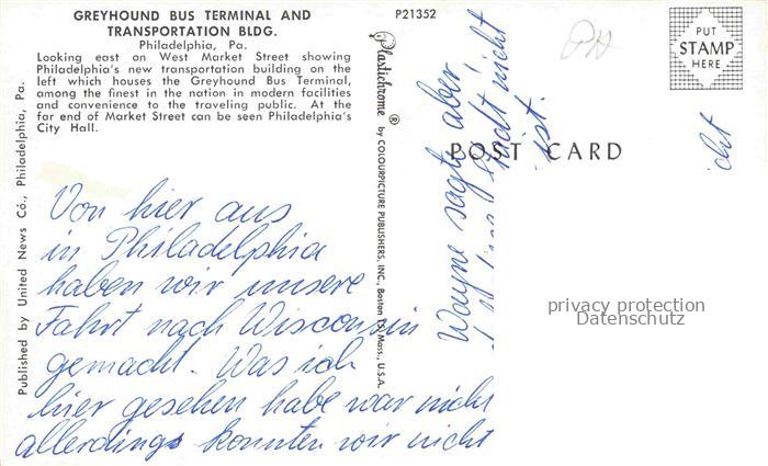 74091321 PHILADELPHIA Pennsylvania USA West Market Street Greyhound Bus Terminal Transportion BLDG. postalisch nicht gelaufen Erhaltung siehe scans [IrynaD87] KatCode: 14140410000000