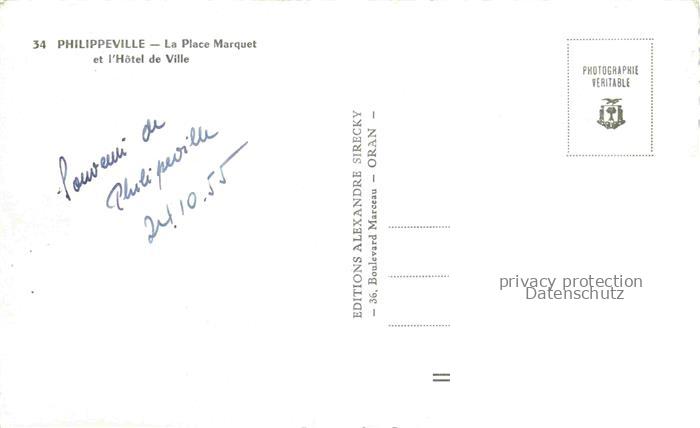 74112922 Philippeville Algerie La Place Marquet Hotel de Ville postalisch nicht gelaufen Erhaltung siehe scans [SanaeD93] KatCode: 18030