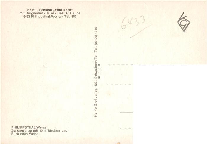 73887785 Philippsthal Werra Hotel Pension Villa Koch mit Bergmannsklause postalisch nicht gelaufen Erhaltung siehe scans [FriedD77] KatCode: 11110006632016