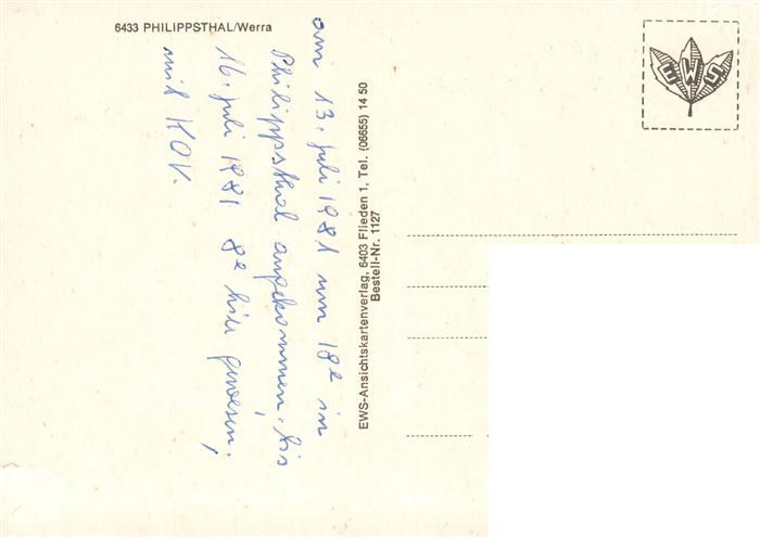 73886850 alte Postkarte Philippsthal Werra Teilasicht Ortsmitte Zum hessischen Wappen Rathaus Zonengrenz Partie Schloss postalisch gelaufen Erhaltung siehe scans [WerneD78] KatCode: 11110006632016