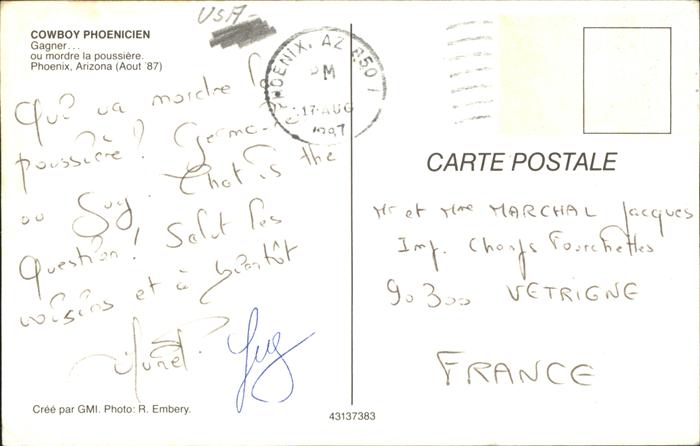 11491355 old postcard Phoenix Arizona Cowboy postalisch gelaufen KatCode: 14140030000000