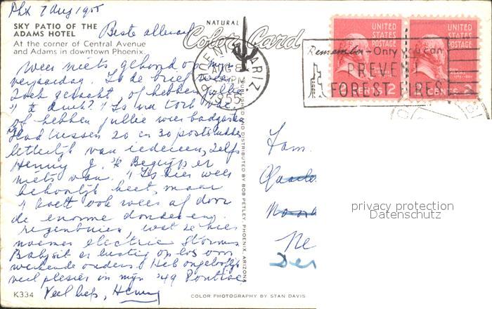 72250066 old postcard Phoenix Arizona Sky Patio of the Adams Hotel postalisch gelaufen Erhaltung siehe scans KatCode: 14140030000000