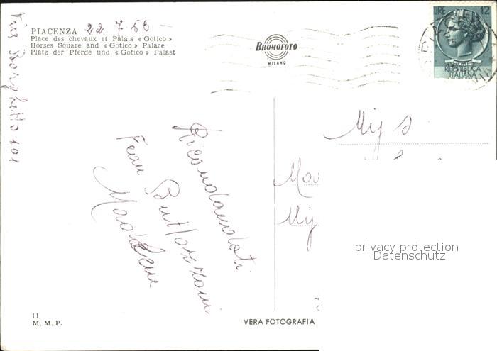 old postcard Piacenza Platz der Pferde und der Gotico Palast postalisch gelaufen Erhaltung siehe scans
