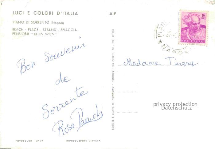 74026774 old postcard Piano di Sorrento Napoli Bundesland Campania IT Vista dal mare Spiaggia Pensione Klein Wien postalisch gelaufen Erhaltung siehe scans [FriedD77] KatCode: 11240