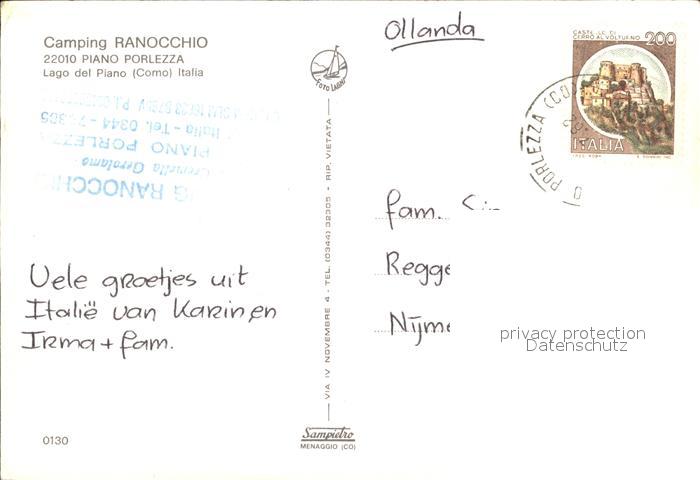 old postcard Piano Porlezza Camping Ranocchio Lago del Piano postalisch gelaufen Erhaltung siehe scans