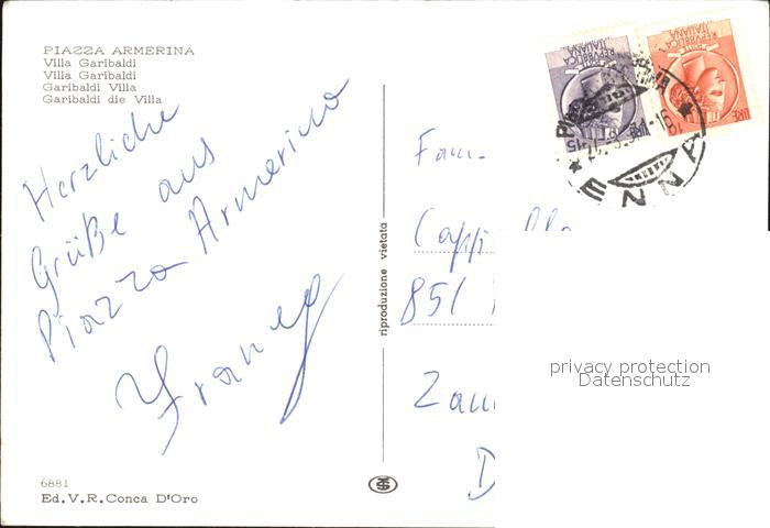 old postcard Piazza Armerina Villa Garibaldi postalisch gelaufen Erhaltung siehe scans