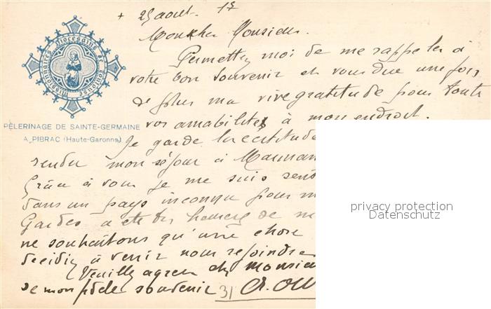 13555674 Pibrac Pèlerinage de Sainte Germaine postalisch nicht gelaufen Erhaltung siehe scans [FriedD77] KatCode: 11170031331417