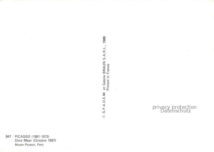 74063128 PICAssO Pablo (1881-1973) Kuenstlerkarte Dora Maar postalisch nicht gelaufen Erhaltung siehe scans [IrynaD87] KatCode: 22240000003200