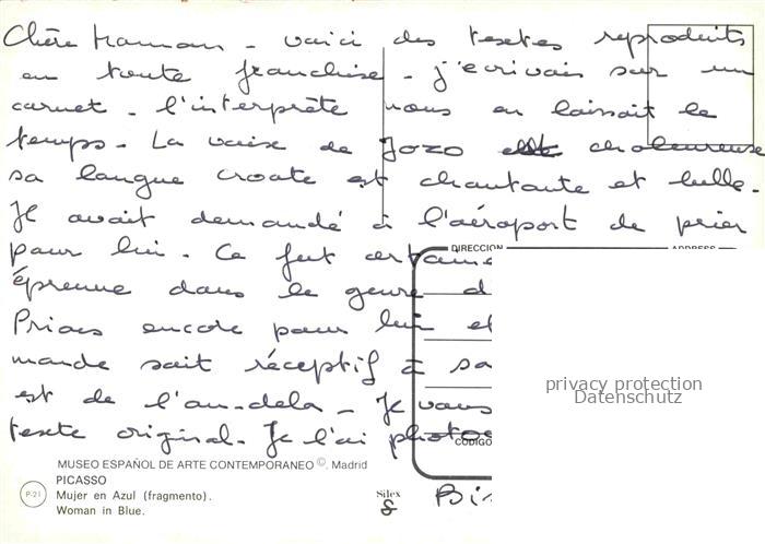 74063129 PICAssO Pablo (1881-1973) Kuenstlerkarte Mujer en Azur postalisch nicht gelaufen Erhaltung siehe scans [IrynaD87] KatCode: 22240000003200