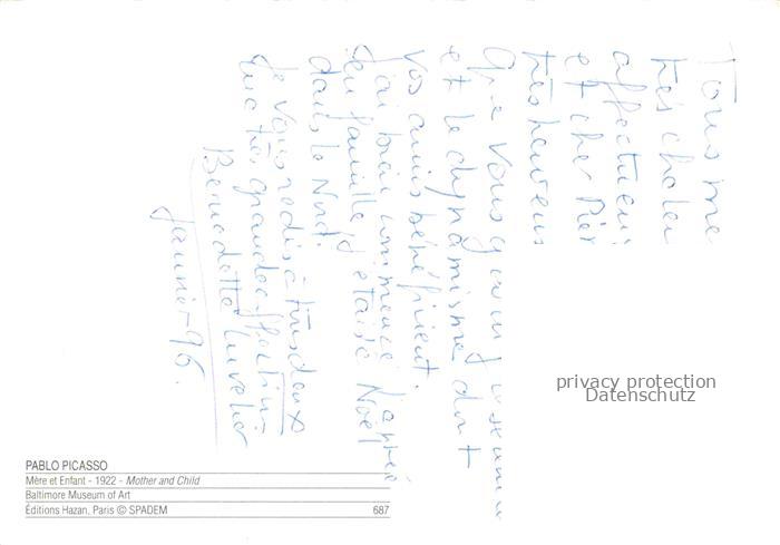74063125 PICAssO Pablo (1881-1973) Kuenstlerkarte Mutter und Kind postalisch nicht gelaufen Erhaltung siehe scans [IrynaD87] KatCode: 22240000003200