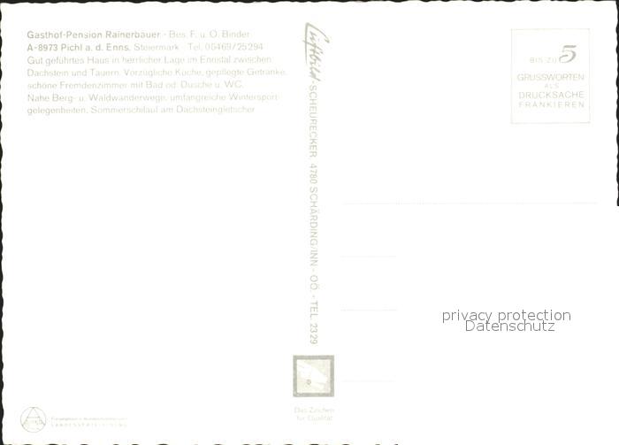 72186513 Pichl Schladming Dachstein Tauern Gasthof Pension Rainerbauer postalisch nicht gelaufen Erhaltung siehe scans KatCode: 11390222061242