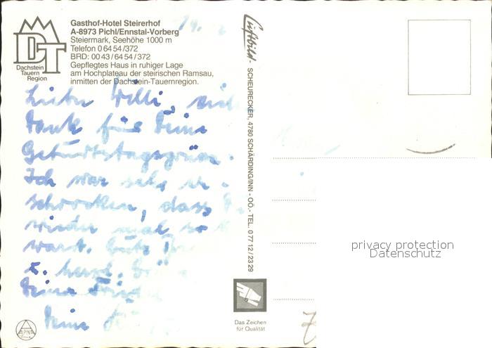 42923710 Pichl Schladming Gasthof Hotel Steirerhof Seilbahn See Dachstein postalisch nicht gelaufen Erhaltung siehe scans [WerneD48] KatCode: 11390222061242