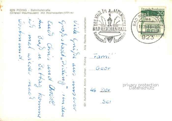 73017891 alte Postkarte Piding Bahnhofstrasse mit Hochstaufen postalisch gelaufen Erhaltung siehe scans [WerneD78] KatCode: 11110009172128