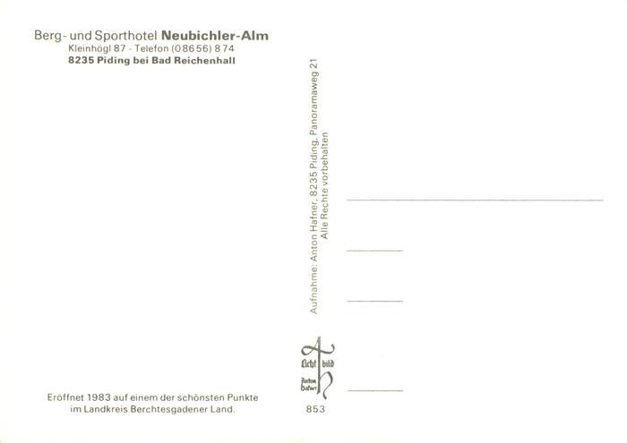 73942943 Piding Berg- und Sporthotel Neubichler Alm postalisch nicht gelaufen Erhaltung siehe scans [FriedD77] KatCode: 11110009172128