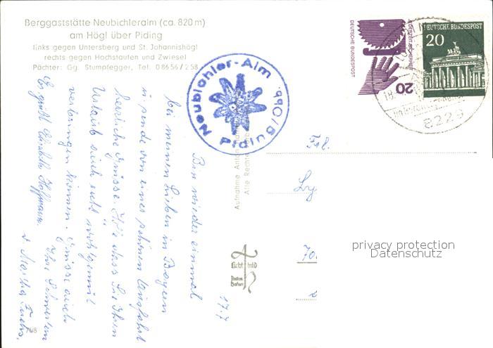 72497073 alte Postkarte Piding Berggaststaette Neubichleralm am Hoegl Haflinger Pferde Untersberg St Johannishoegl Hochstaufen Zwiesel postalisch gelaufen Erhaltung siehe scans KatCode: 11110009172128
