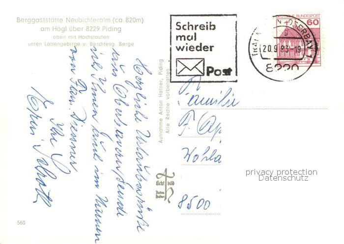 72931565 alte Postkarte Piding Berggaststaette Neubichleralm Hoegl postalisch gelaufen Erhaltung siehe scans [KathaD81] KatCode: 11110009172128