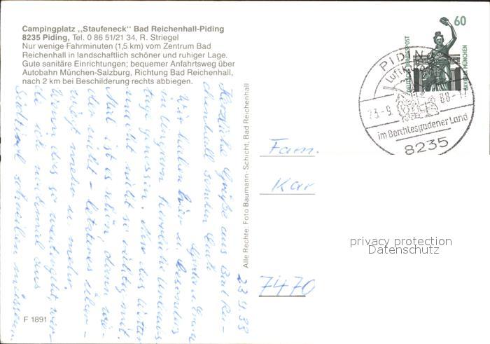 71936271 alte Postkarte Piding Campingplatz Staufeneck postalisch gelaufen Erhaltung siehe scans KatCode: 11110009172128