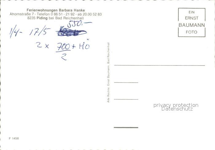 72410665 Piding Ferienwohnungen Barbara Hanke Details postalisch nicht gelaufen Erhaltung siehe scans KatCode: 11110009172128