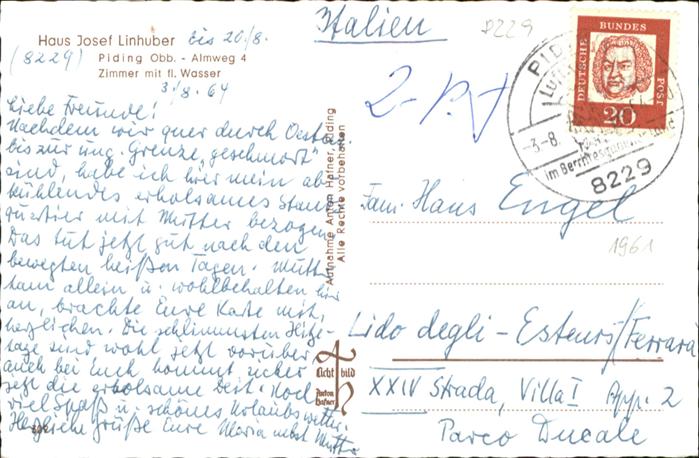 70941269 alte Postkarte Piding Haus Josef Linhuber postalisch gelaufen KatCode: 11110009172128