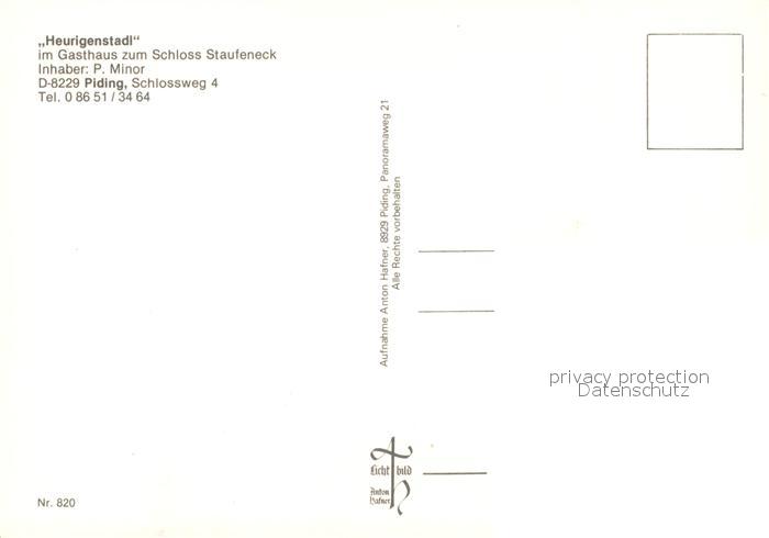 73291657 Piding Heurigenstadl Gasthaus zum Schloss Staufeneck postalisch nicht gelaufen Erhaltung siehe scans [KathaD81] KatCode: 11110009172128