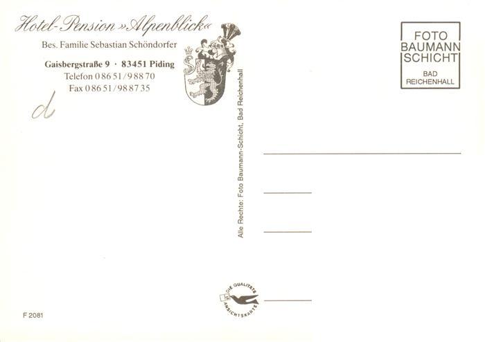73882200 Piding Hotel Pension Alpenblick postalisch nicht gelaufen Erhaltung siehe scans [WerneD78] KatCode: 11110009172128