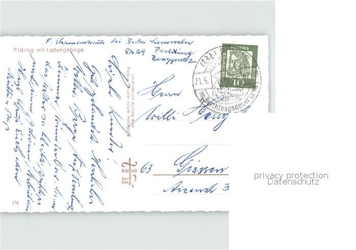 72472523 alte Postkarte Piding Lattengebirge postalisch gelaufen Erhaltung siehe scans KatCode: 11110009172128