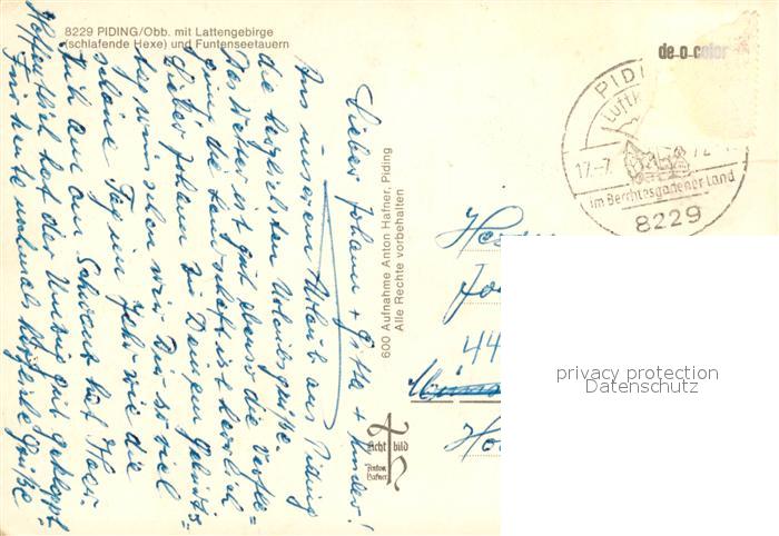 73017885 alte Postkarte Piding mit Lattengebirge und Funtenseetauern postalisch gelaufen Erhaltung siehe scans [WerneD78] KatCode: 11110009172128