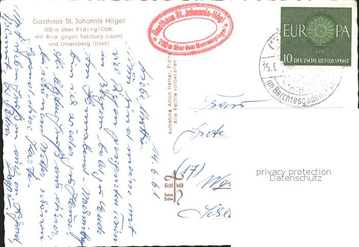 72153645 alte Postkarte Piding Panorama Gasthaus Sankt Johannis Hoegel Terrasse postalisch gelaufen Erhaltung siehe scans KatCode: 11110009172128