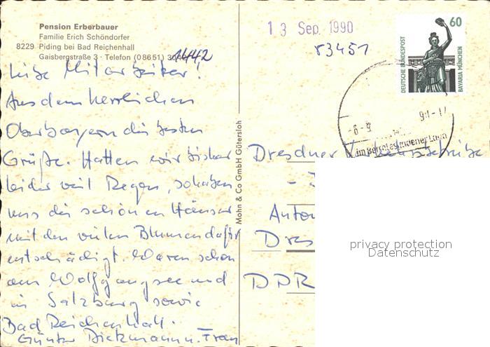 72455196 alte Postkarte Piding Pension Erberbauer postalisch gelaufen Erhaltung siehe scans KatCode: 11110009172128
