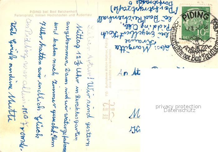 72938318 alte Postkarte Piding Petersplatz Kirche Hochstaufen Fuderheu Chiemgauer Alpen postalisch gelaufen Erhaltung siehe scans [FriedD77] KatCode: 11110009172128