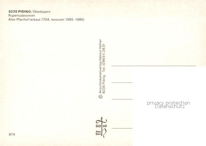 73574842 Piding Rupertusbrunnen Alter Pfarrhof 18. Jhdt. postalisch nicht gelaufen Erhaltung siehe scans [FriedD77] KatCode: 11110009172128