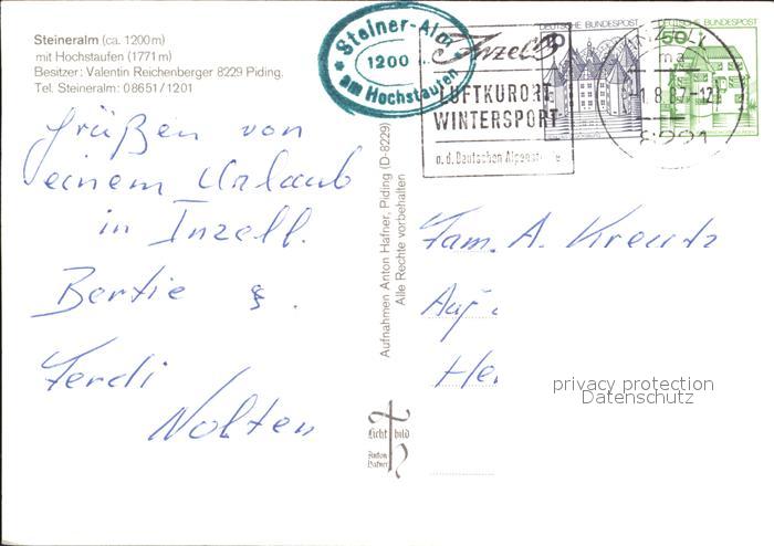 72304928 alte Postkarte Piding Steineralm postalisch gelaufen Erhaltung siehe scans KatCode: 11110009172128