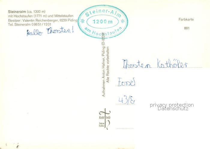 73740409 Piding Steineralm mit Hochstaufen und Mittelstaufen postalisch nicht gelaufen Erhaltung siehe scans [FriedD77] KatCode: 11110009172128