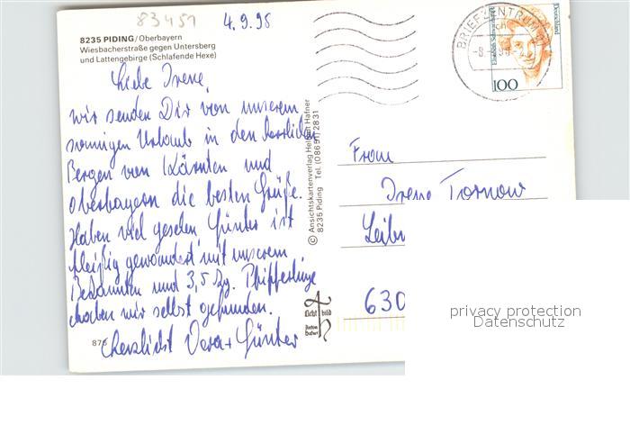 alte Postkarte Piding Wiesbacherstrasse gegen Untersberg postalisch gelaufen Erhaltung siehe scans