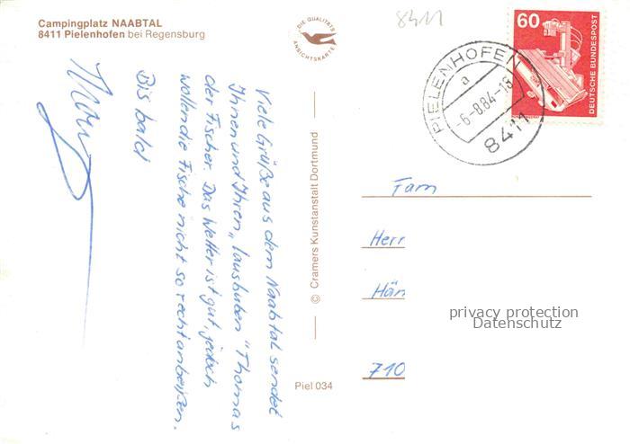 74049157 alte Postkarte Pielenhofen Campingplatz Naabtal Landschaftspanorama Partie an der Naab postalisch gelaufen Erhaltung siehe scans [FriedD77] KatCode: 11110009375184