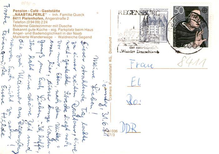 73891274 alte Postkarte Pielenhofen Pension Cafe Gaststaette Naabtalperle postalisch gelaufen Erhaltung siehe scans [WerneD78] KatCode: 11110009375184