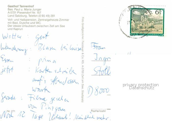 12788743 alte Postkarte Piesendorf Gasthof Tannenhof Gaststube postalisch gelaufen Erhaltung siehe scans [WerneD78] KatCode: 11390322050616