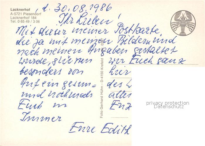 73522955 Piesendorf Lacknerhof postalisch nicht gelaufen Erhaltung siehe scans [LiesaD40] KatCode: 11390322050616