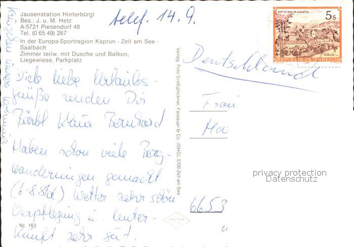 72181136 alte Postkarte Piesendorf Pension Jausenstation Hetz postalisch gelaufen Erhaltung siehe scans KatCode: 11390322050616