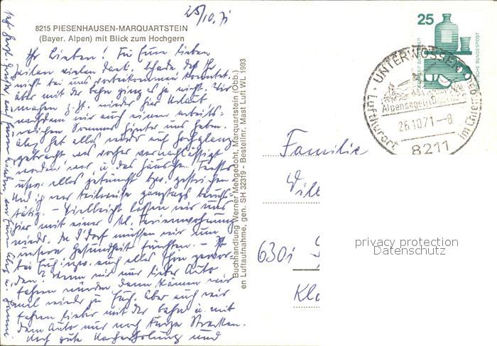 72048269 alte Postkarte Piesenhausen mit Blick zum Hochgern Bayerische Alpen Fliegeraufnahme postalisch gelaufen Erhaltung siehe scans KatCode: 11110009189129