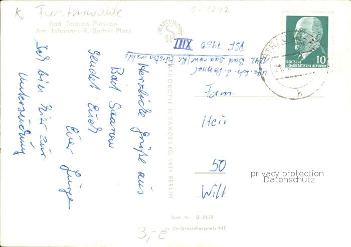 72080064 alte Postkarte Pieskow Bad Saarow Am Johannes R Becher Platz postalisch gelaufen Erhaltung siehe scans KatCode: 11110012067024