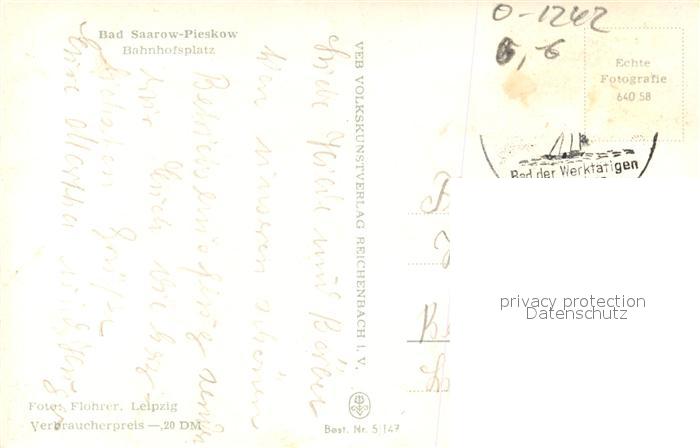 43351520 alte Postkarte Pieskow Bad Saarow BAhnhofsplatz postalisch gelaufen Erhaltung siehe scans [KathaD81] KatCode: 11110012067024
