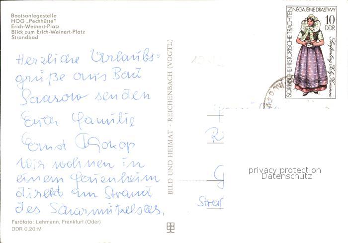 72237061 alte Postkarte Pieskow Bad Saarow Bootsanlegestelle HOG Pechhuette Erich Weinert Platz Strandbad postalisch gelaufen Erhaltung siehe scans KatCode: 11110012067024