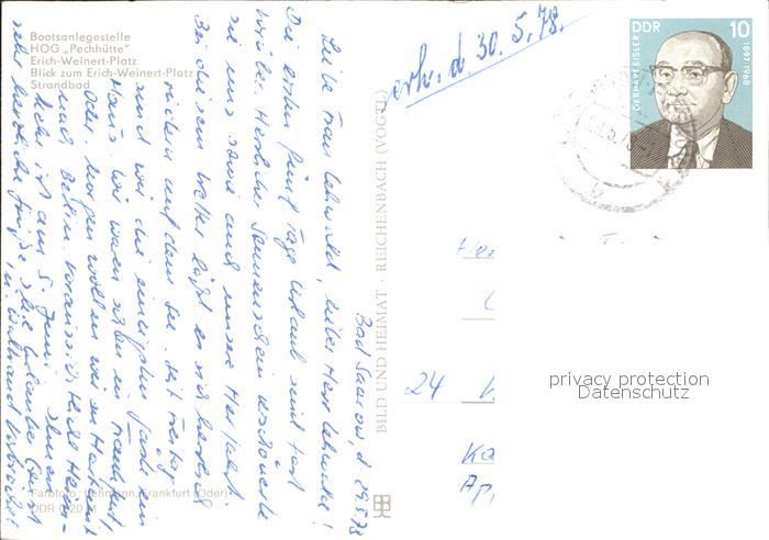 72138155 alte Postkarte Pieskow Bad Saarow Bootsanlegestelle HOG Pechhuette Erich Weinert Platz Strandbad postalisch gelaufen Erhaltung siehe scans KatCode: 11110012067024