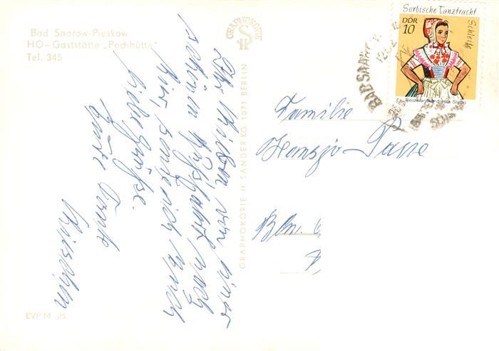 73924188 alte Postkarte Pieskow Bad Saarow HOG Gaststaette Pechhuette Gastraeume postalisch gelaufen Erhaltung siehe scans [FriedD77] KatCode: 11110012067024