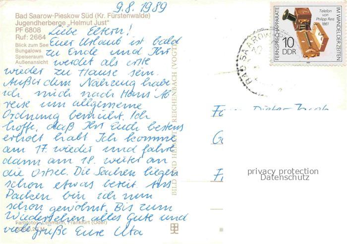 74025072 alte Postkarte Pieskow Bad Saarow Jugendherberge Helmut Just Seeblick Bungalows Speiseraum postalisch gelaufen Erhaltung siehe scans [FriedD77] KatCode: 11110012067024
