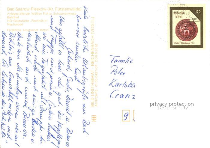 72383032 alte Postkarte Pieskow Bad Saarow Neptunbad Schwanenwiese Restaurant Pechhuette postalisch gelaufen Erhaltung siehe scans KatCode: 11110012067024