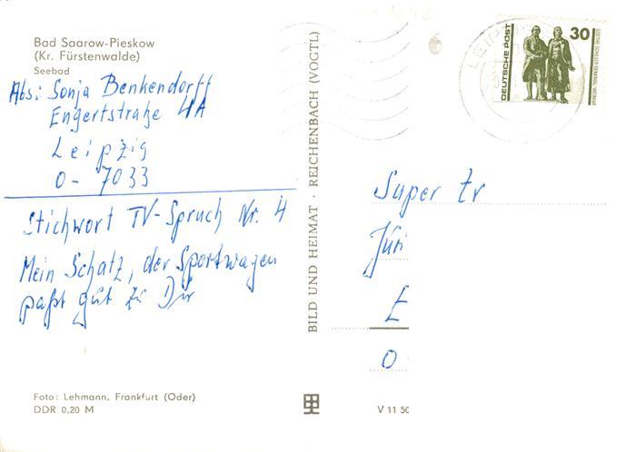 73901162 alte Postkarte Pieskow Bad Saarow Seebad postalisch gelaufen Erhaltung siehe scans [FriedD77] KatCode: 11110012067024