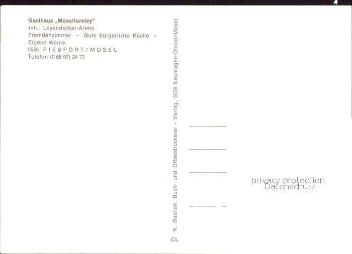 72254737 Piesport Gasthaus Moselloreley Eingangstuer postalisch nicht gelaufen Erhaltung siehe scans KatCode: 11110007231105